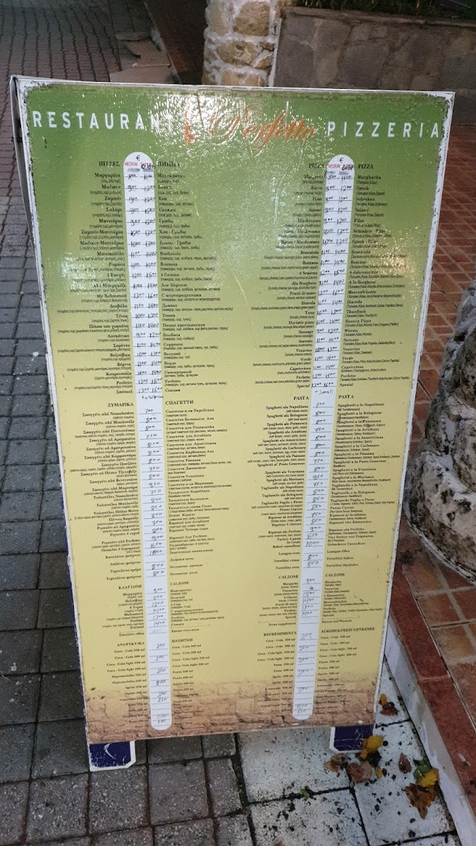 Εστιατοριο Perfetto Menu